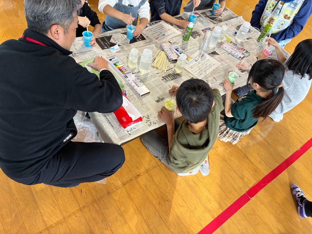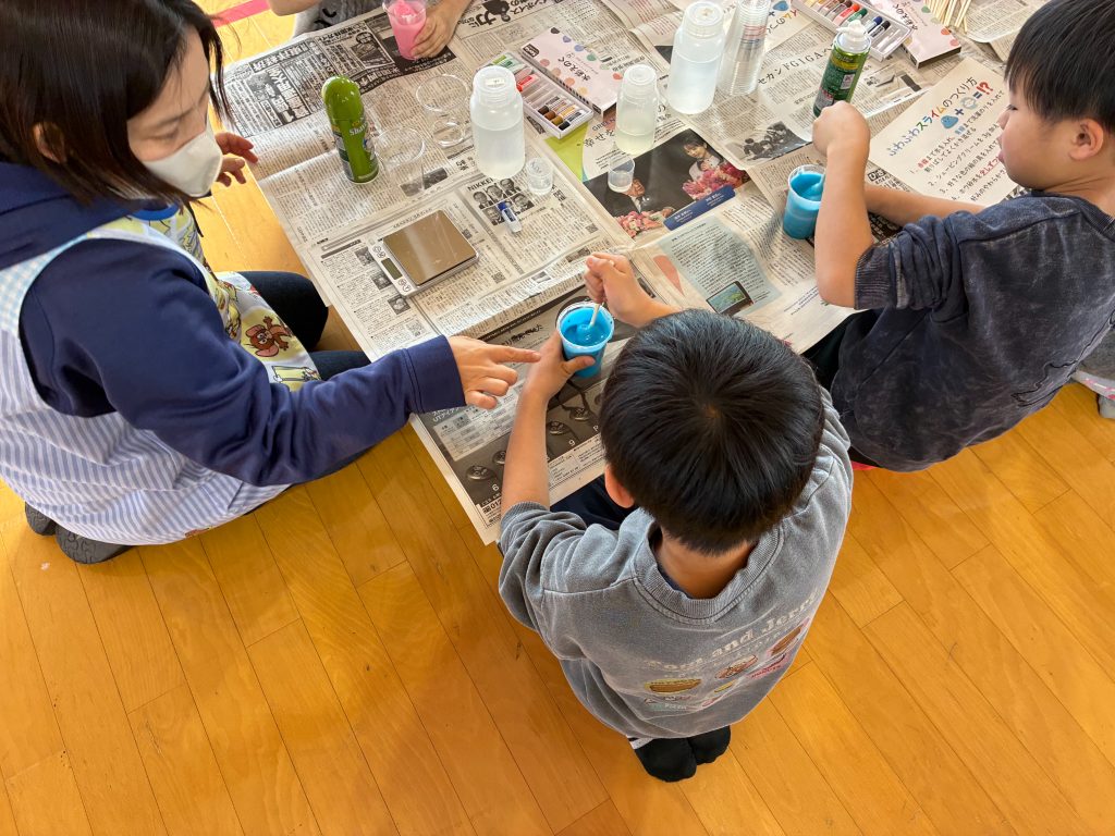 【内容】令和8年2月12日に広野町児童館で実験教室を開催しました。「ふわふわスライムつくり」をおよそ50名の小学生の皆さんに体験をしていただきました。シェービングクリームを使うと普通のスライムとは違った手触りやのびのあるスライムを作れます。写真は当日の様子です。広野町児童館の職員のみなさまと協力して行いました。ありがとうございました。