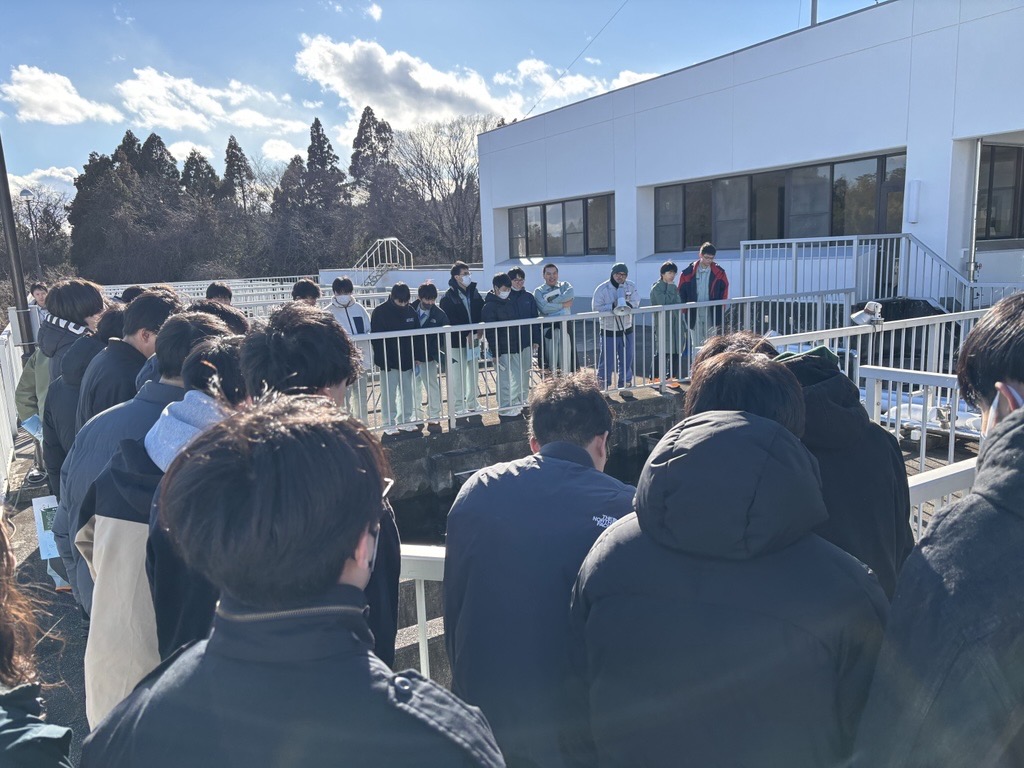 都市システム工学科では,上下水道の計画や処理技術を学びます。このように現場に触れることは,授業で学んだ知識を生きた技術として定着するための貴重な機会となります。ご多忙の中,丁寧にご案内いただいた,いわき市水道局様ならびに水ingの皆様に厚くお礼申し上げます。