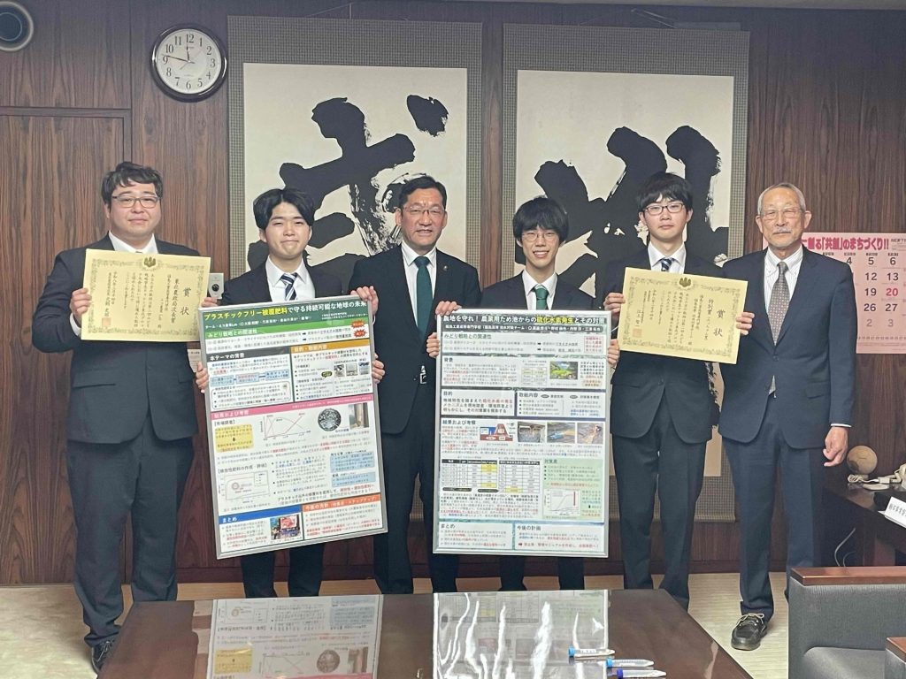 3月23日(月)、第2回みどり戦略学生チャレンジ東北ブロック大会で受賞した学生がいわき市長を表敬訪問しました。